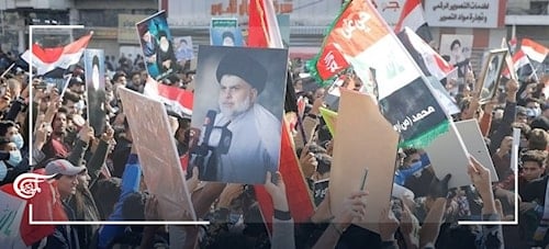 زعيم التيار الوطني الشيعي في العراق السيد مقتدى الصدر خلال إحياء ذكرى استشهاد والده آية الله محمد صادق الصدر، في مدينة النجف جنوب العراق (أ ف ب)